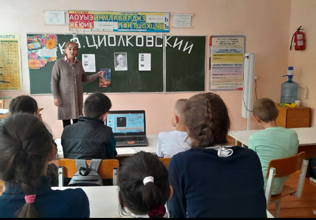 17 сентября 2022 года исполняется 165 лет со дня рождения русского ученого, писателя Константина Эдуардовича Циолковского (1857 – 1935). В рамках этого события с обучающимися МБОУСОШ с.Кальтяево были проведены следующие мероприятия: в 8 классе интеллектуально-развлекательная игра "Циолковский - отец русской космонавтики", с ребятами младшего звена - космическое путешествие "По свету далёких планет"