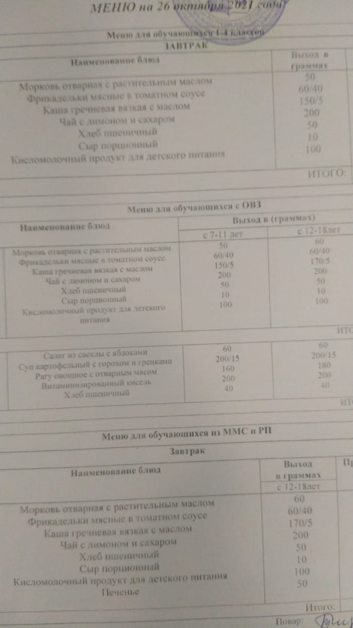 Стоимость школьного питания